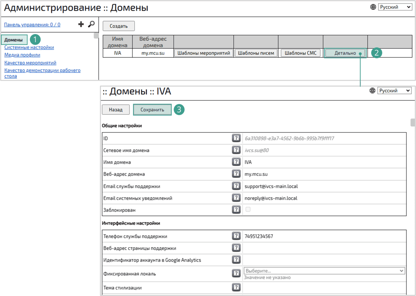 Чтобы внести изменения в доменные настройки Платформы IVA MCU, необходимо:
