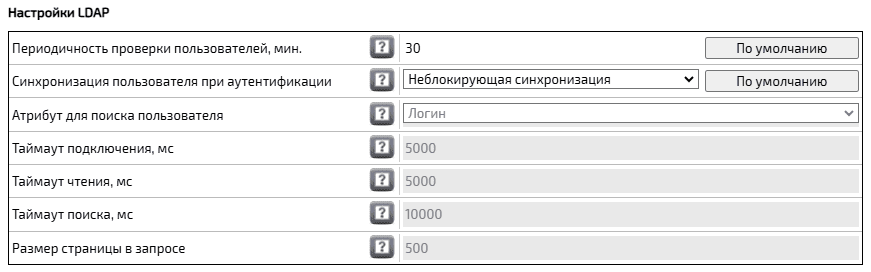 Указывается тайм-аут (в миллисекундах) чтения данных при обращении к LDAP-серверу |