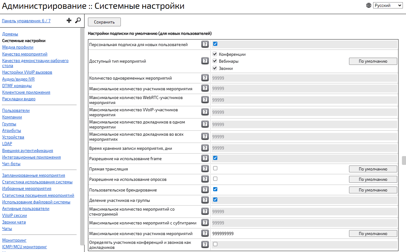 Для создаваемых учетных записей Администратор Платформы IVA MCU в разделе доменных / системных настроек может выполнить следующие настройки подписки по умолчанию: