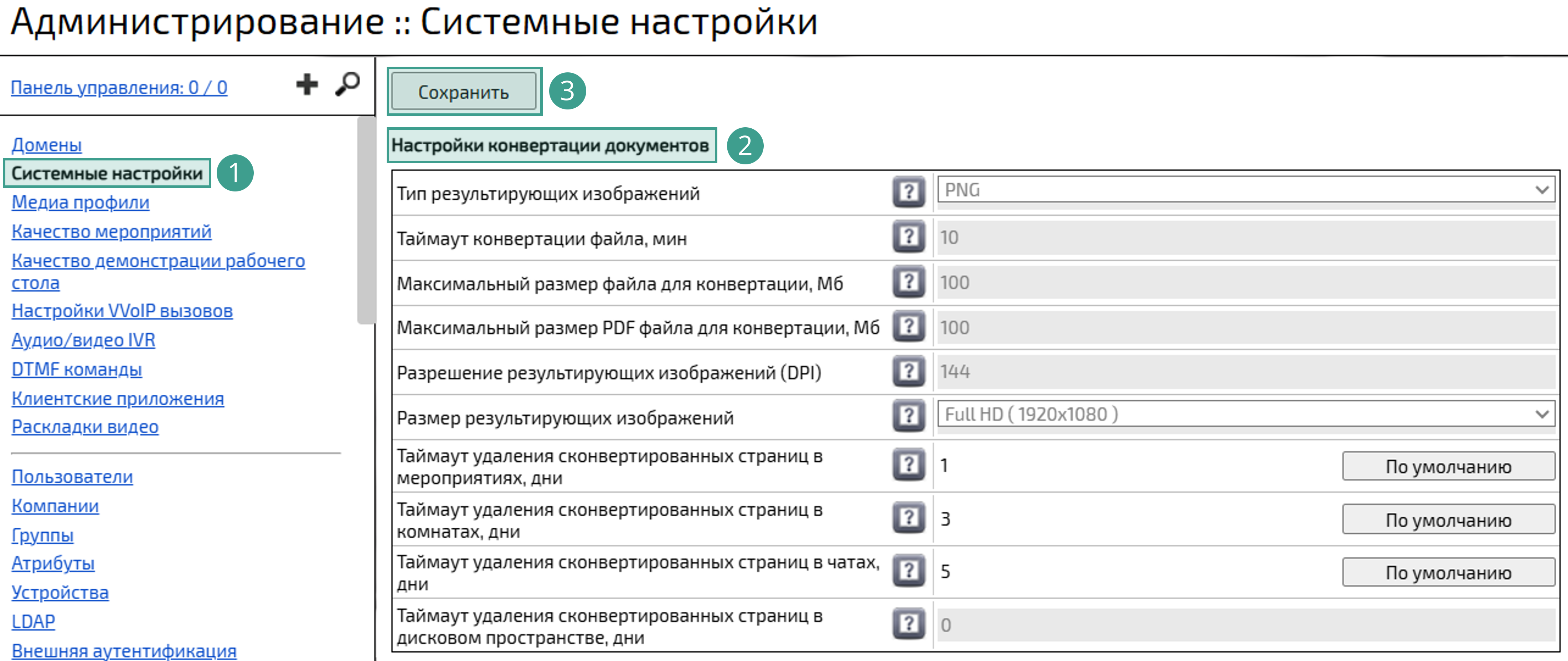 В секции Настройки конвертации документов раздела Системные настройки web-панели администрирования Платформы можно: