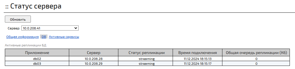 Отображение статуса репликации баз данных в web-панели администрирования Платформы IVA MCU