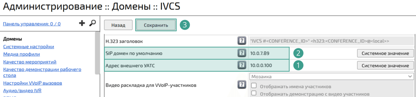 указать название домена во внешнем УАТС: