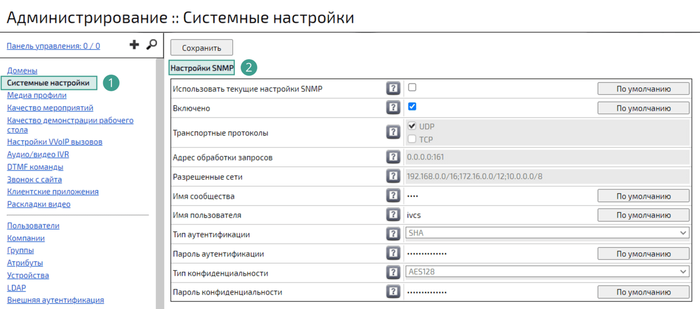 Войти в web-панель администрирования → Перейти в раздел Системные настройки → Перейти к секции Настройки мониторинга → Выполнить настройки → Нажать кнопку Сохранить