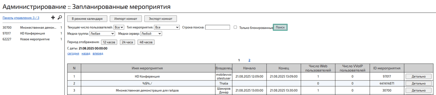Для поиска мероприятия Администратору Платформы IVA MCU , необходимо: