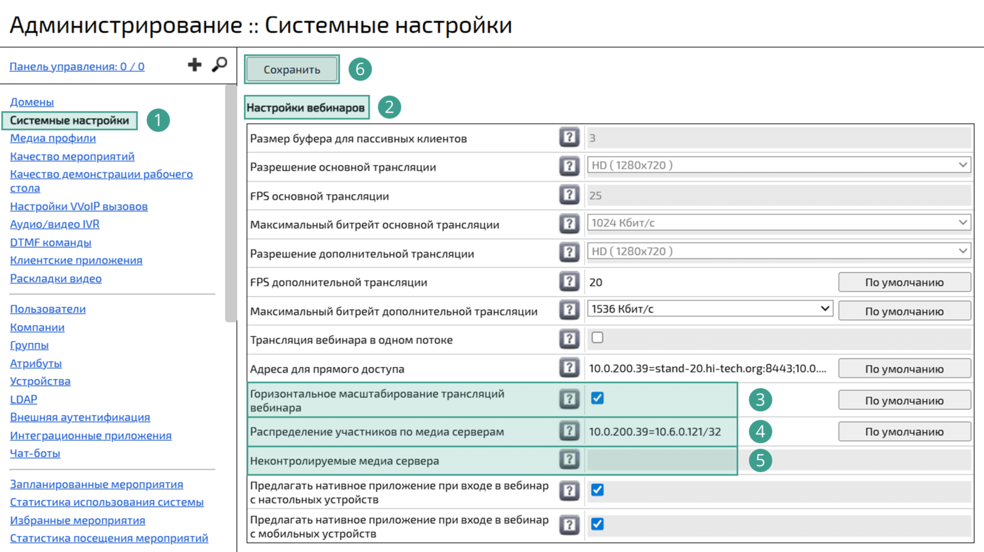включить настройку Горизонтальное масштабирование трансляций вебинара: