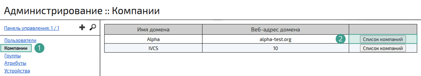 Войти в web-панель администрирования → Перейти в раздел Компании