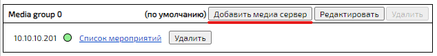Для удаления медиасервера необходимо нажать кнопку Удалить -