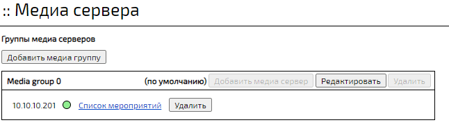 Перейти в раздел Медиа сервера → Перейти в секцию Группы медиа серверов