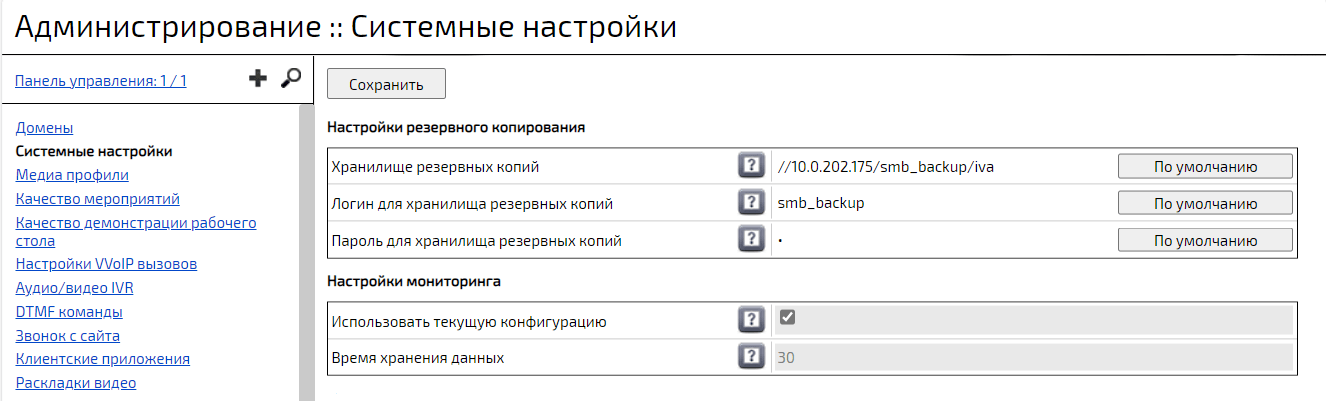 Web-панель администрирования Платформы IVA MCU → Системные настройки → Настройки резервного копирования
