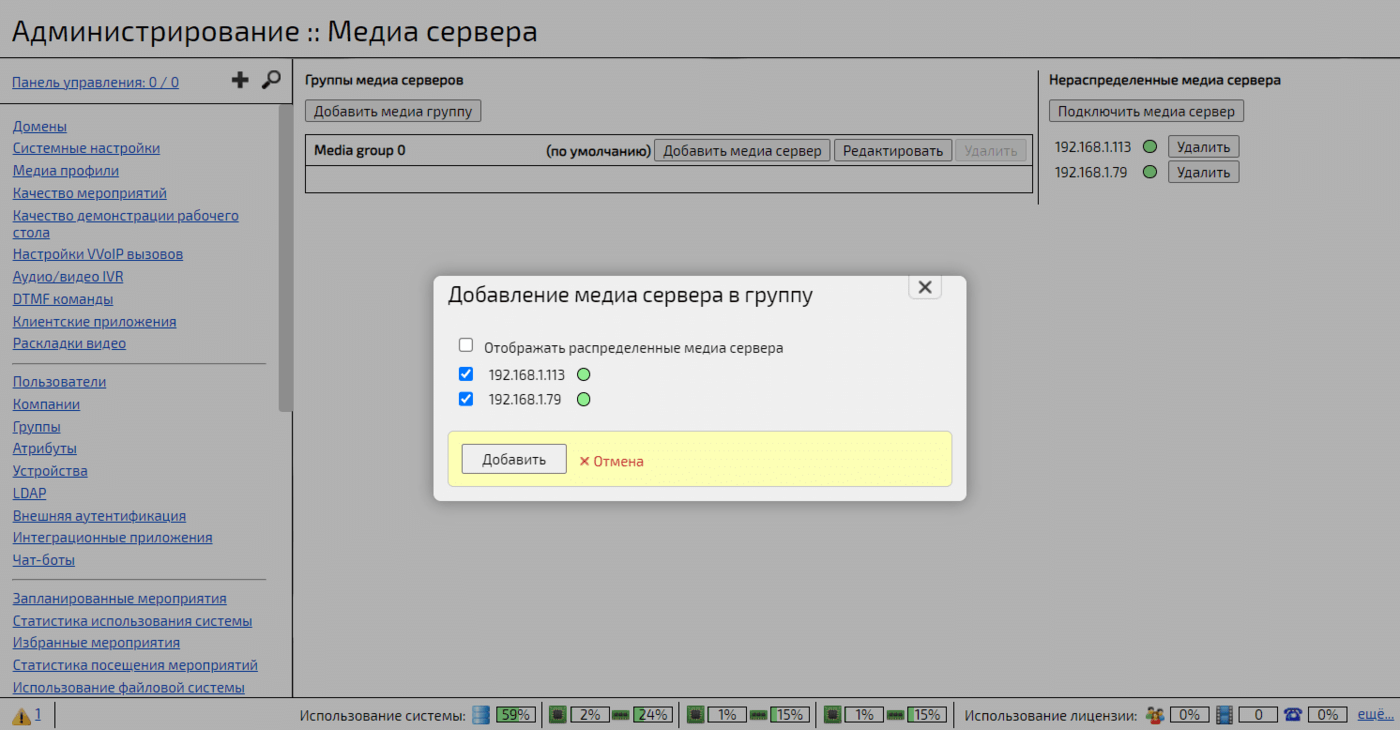 Добавление медиасервера