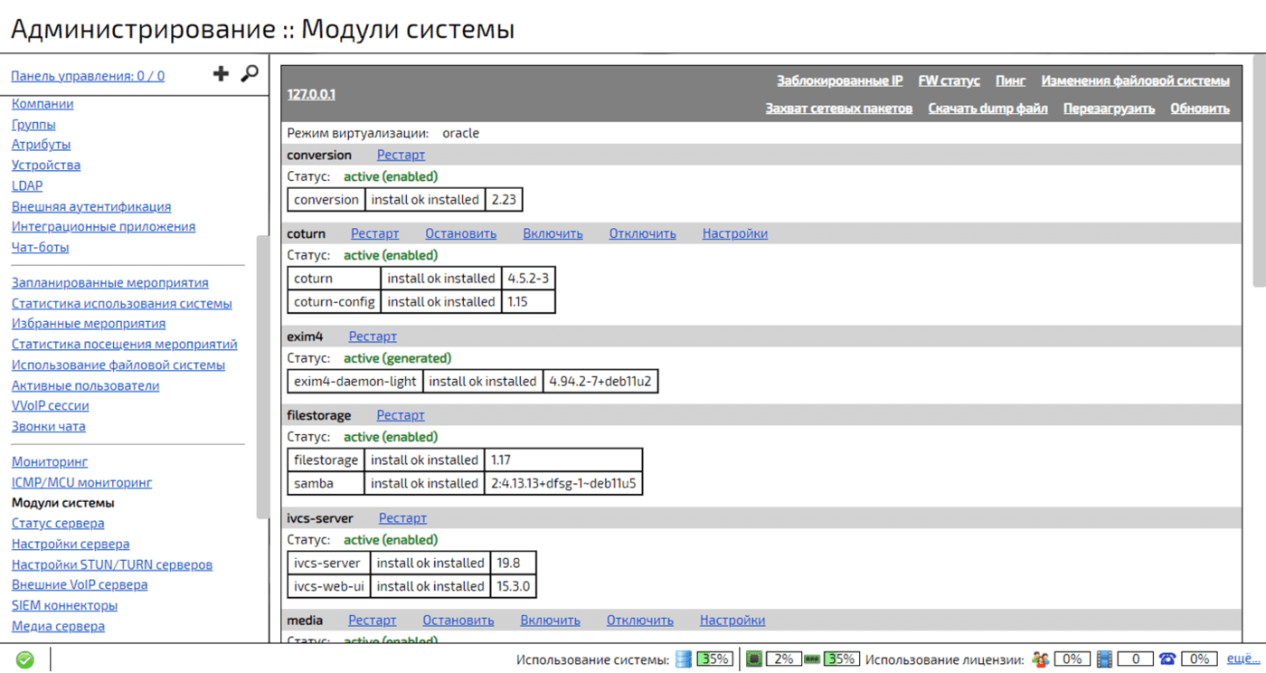 web-панель администрирования Платформы IVA MCU