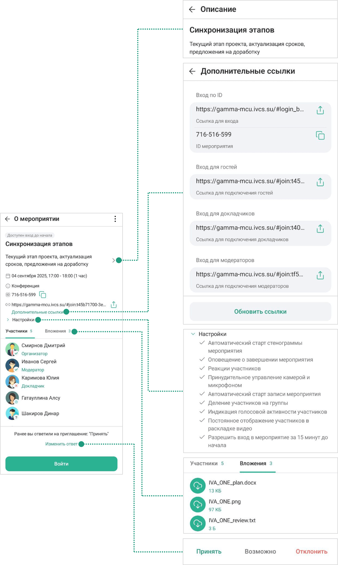 ID мероприятия, Гостевая ссылка и Ссылки видны только Организатору мероприятия
