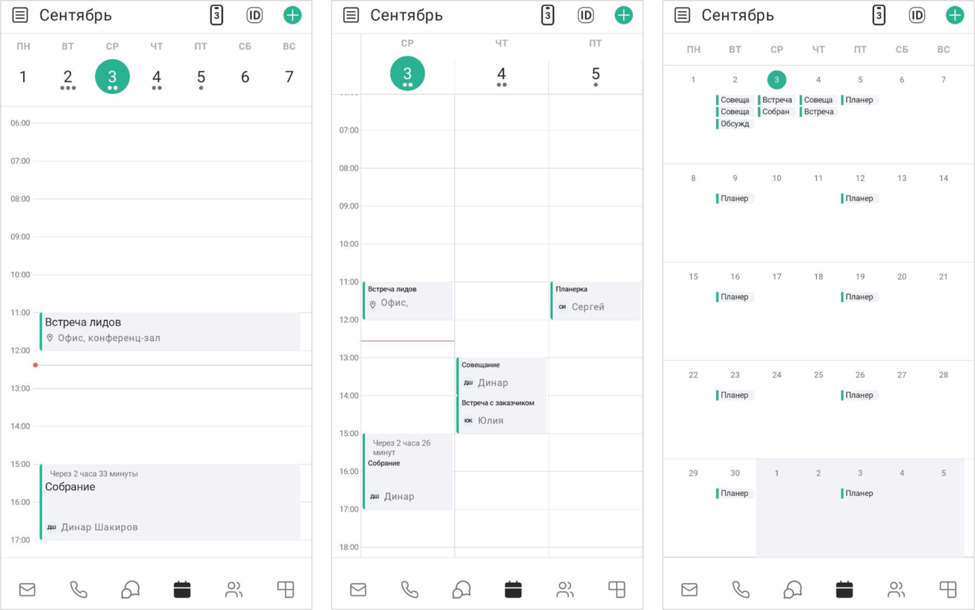 календари (переключение между календарями для различных пространств)