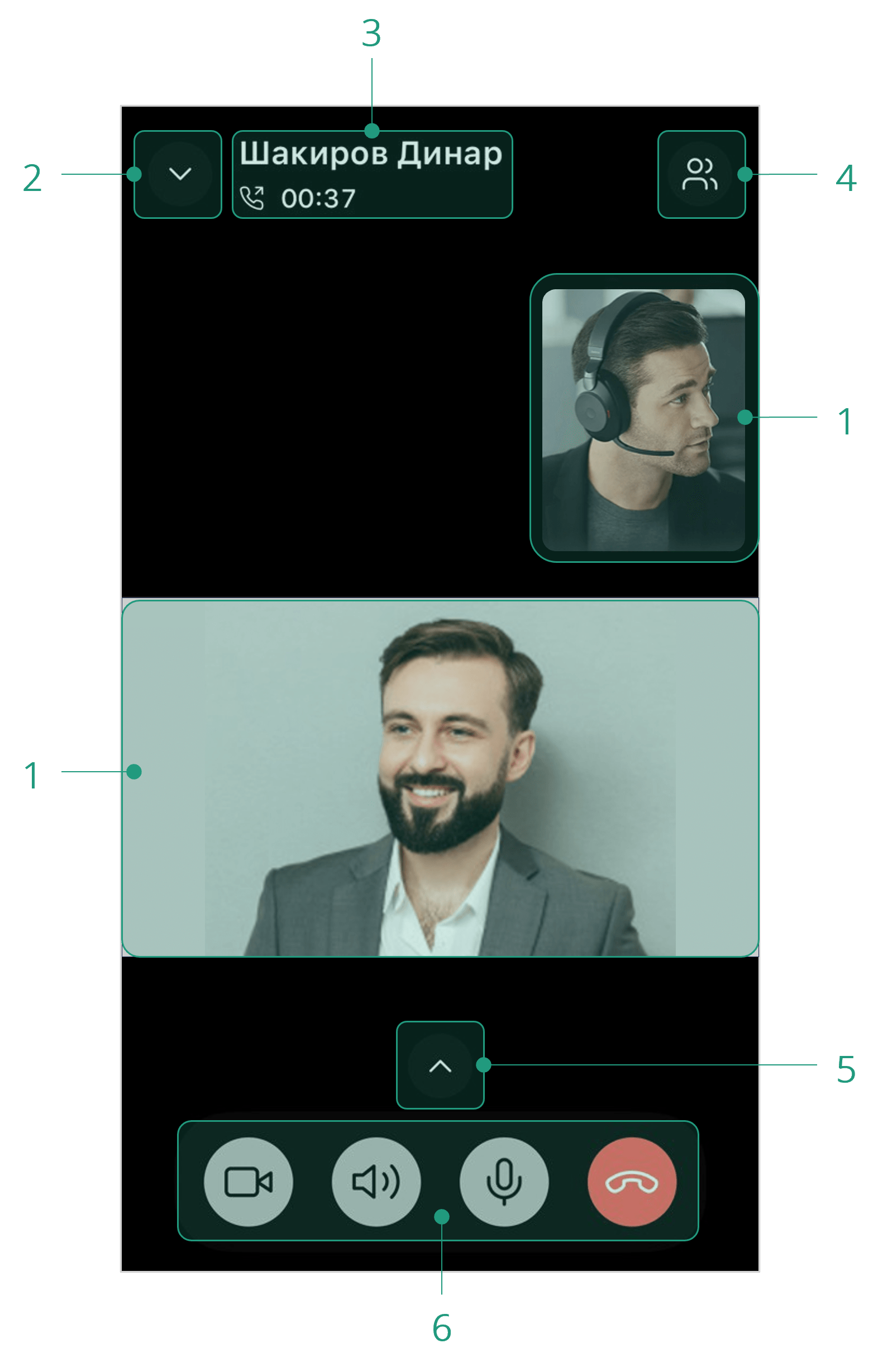 Для перехода в режим отображения Картинка в картинке: Рабочая область звонка → Нажать кнопку ![]()