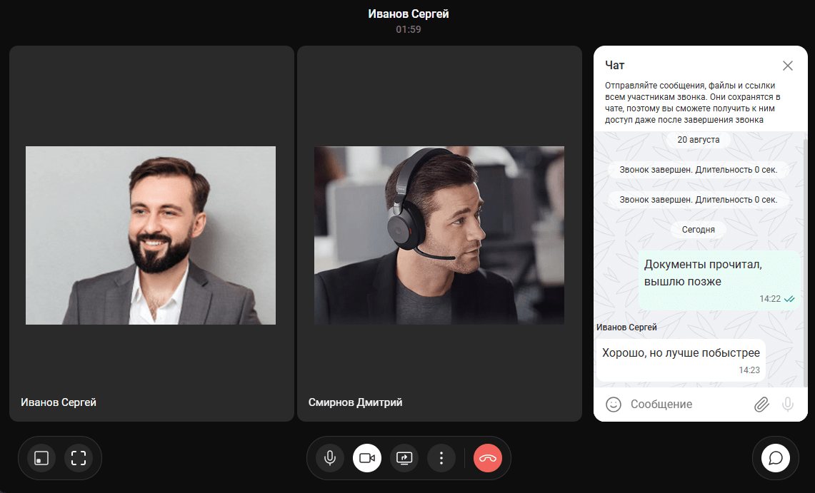 чат с участниками звонка