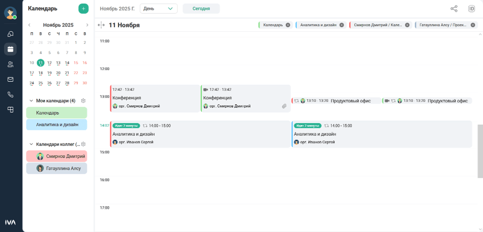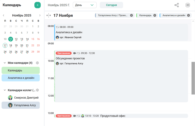 (секция Календари коллег) -