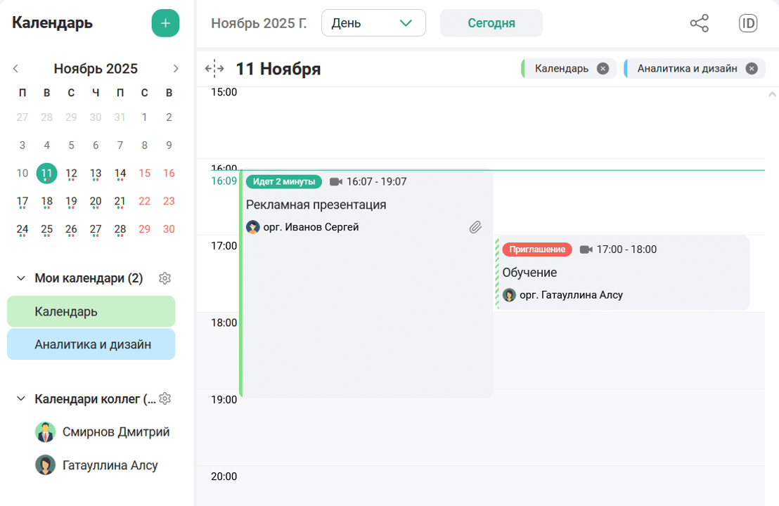 Если пользователя пригласили на запланированное мероприятие, то в календаре пользователя появится уведомление о приглашении.