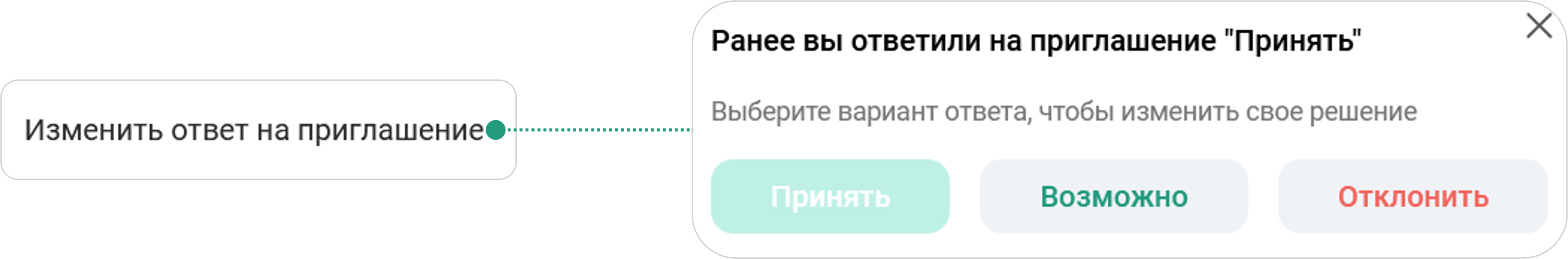 быстрые ответы на приглашение: принять / возможно / отклонить