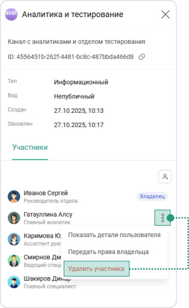 Удаление участника из канала