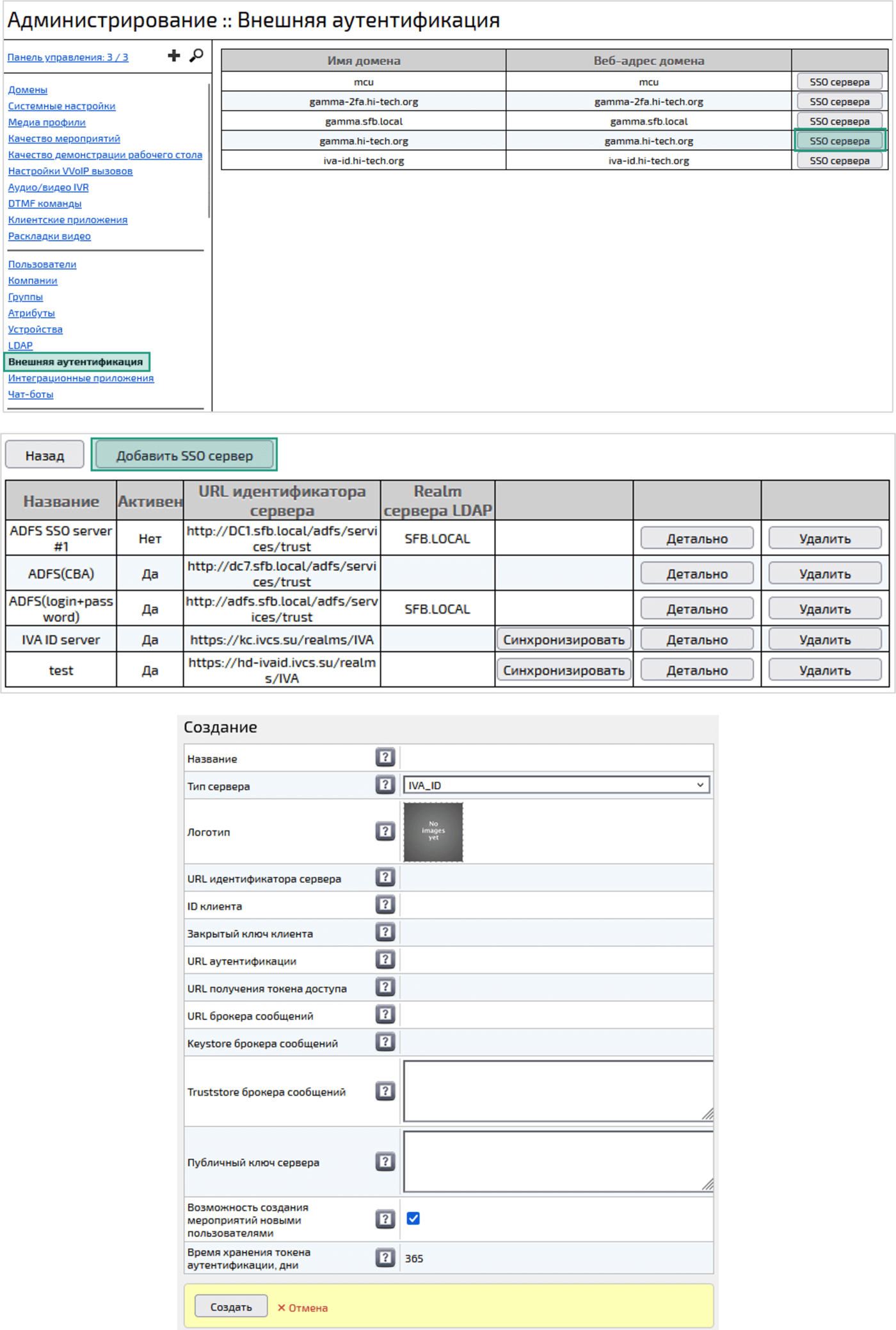 Регистрация SSO-сервера IVA ID в IVA MCU