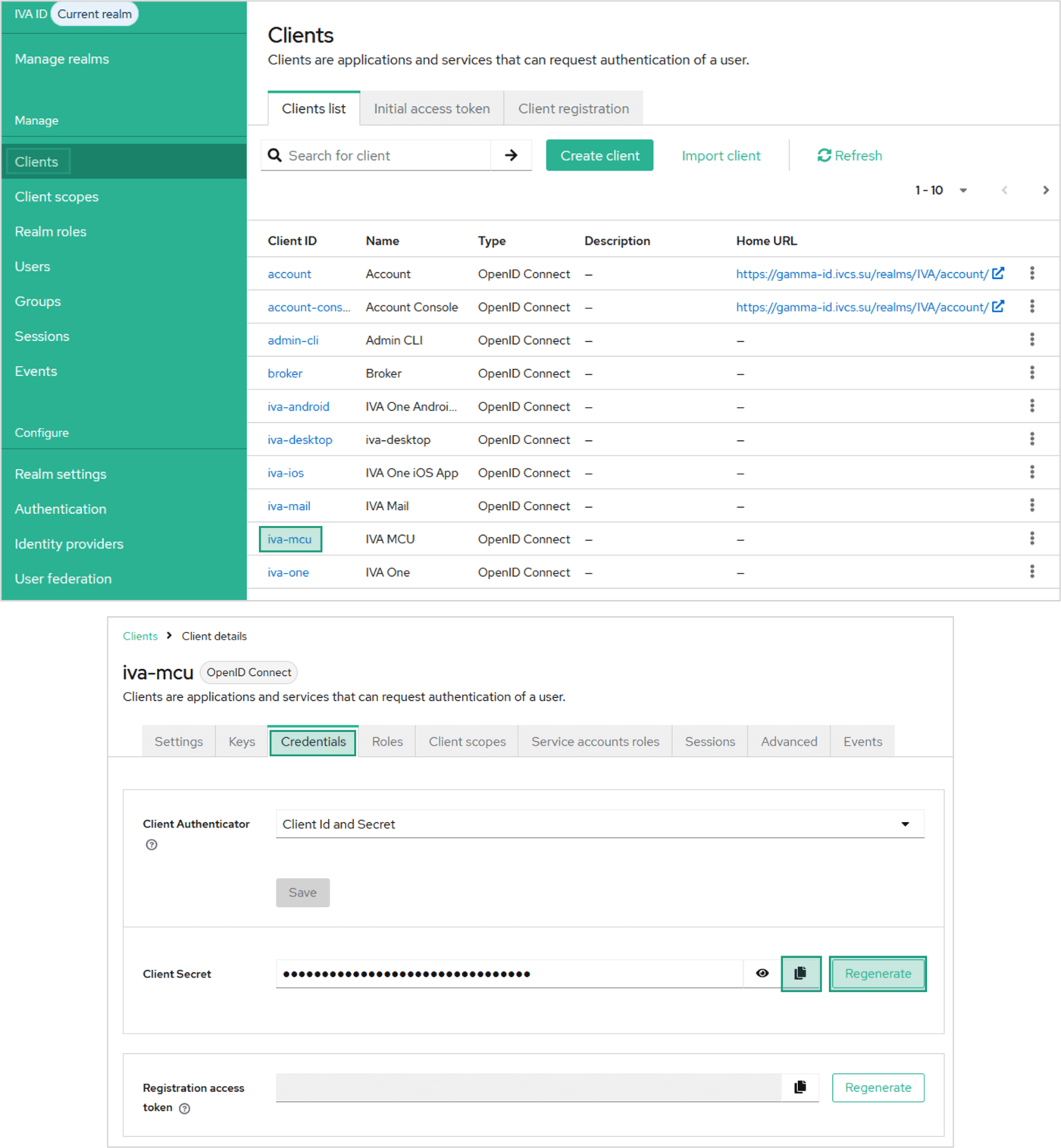URL получения токена доступа: значение поля token_endpoint из IVA ID