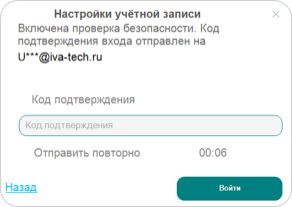 Если в Платформе IVA MCU Администратором включена Двухфакторная аутентификация, то для авторизации необходимо дополнительно ввести код подтверждения входа, отправленный на адрес электронной почты и/или на телефон пользователя в виде SMS.