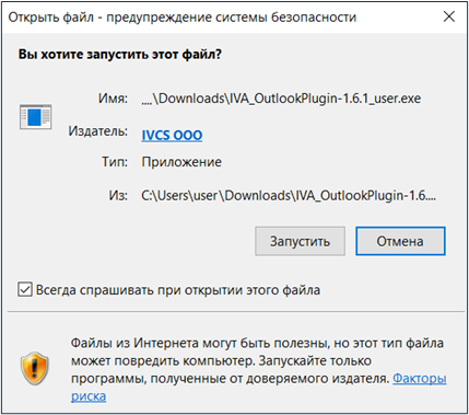 Для установки Plugin с помощью установочного файла (.exe) необходимо выполнить основные действия:
