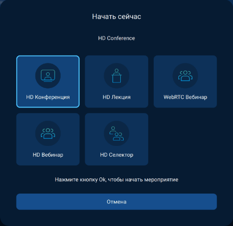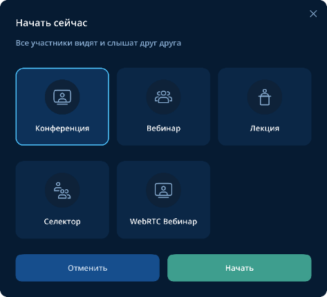• Конференция — конференция в высоком качестве видео и аудио