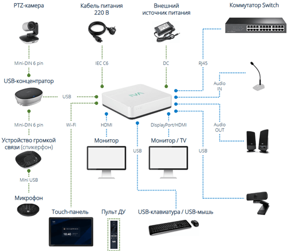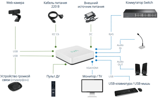 В зависимости от исполнения IVA Room поддерживает различное подключаемое оборудование: