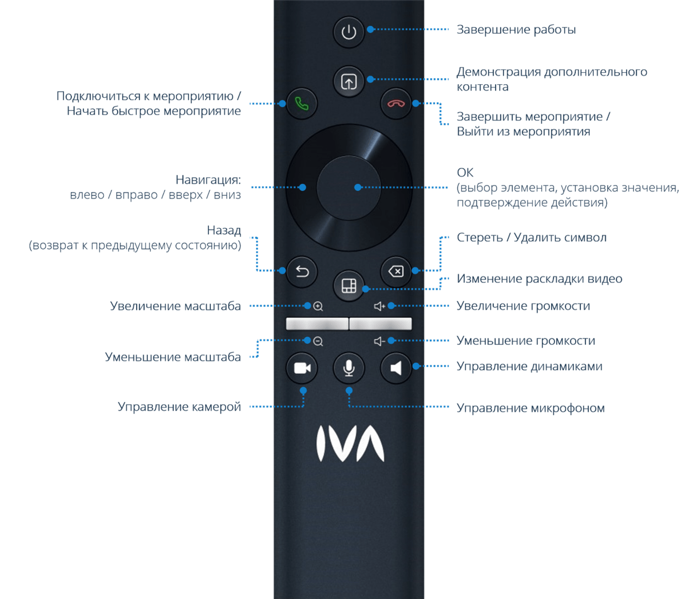 IVA Room поддерживает виртуальную клавиатуру, которая обеспечивает ввод данных. Чтобы вызвать виртуальную клавиатуру: Пульт дистанционного управленияВыбрать поле вводаНажать кнопку ОК