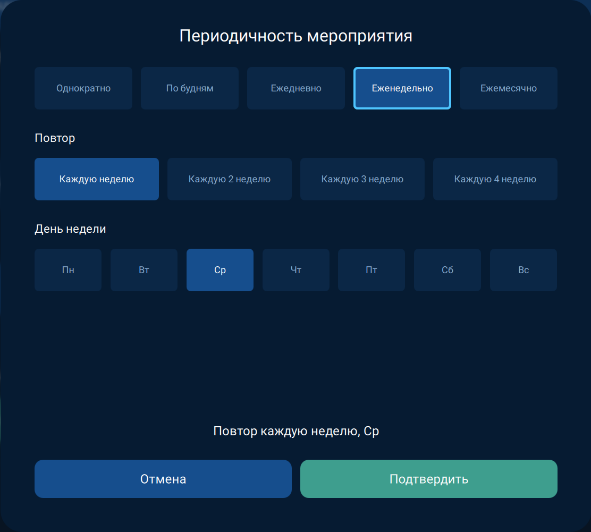 | В случае редактирования периодического мероприятия IVA Room позволяет отредактировать только сеанс мероприятия на сегодня. Серия периодических сеансов мероприятия для редактирования не доступна |