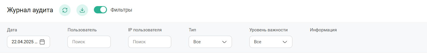 Чтобы обновить список журнала аудита, необходимо нажать кнопку