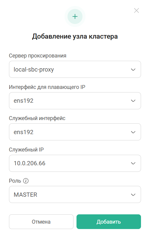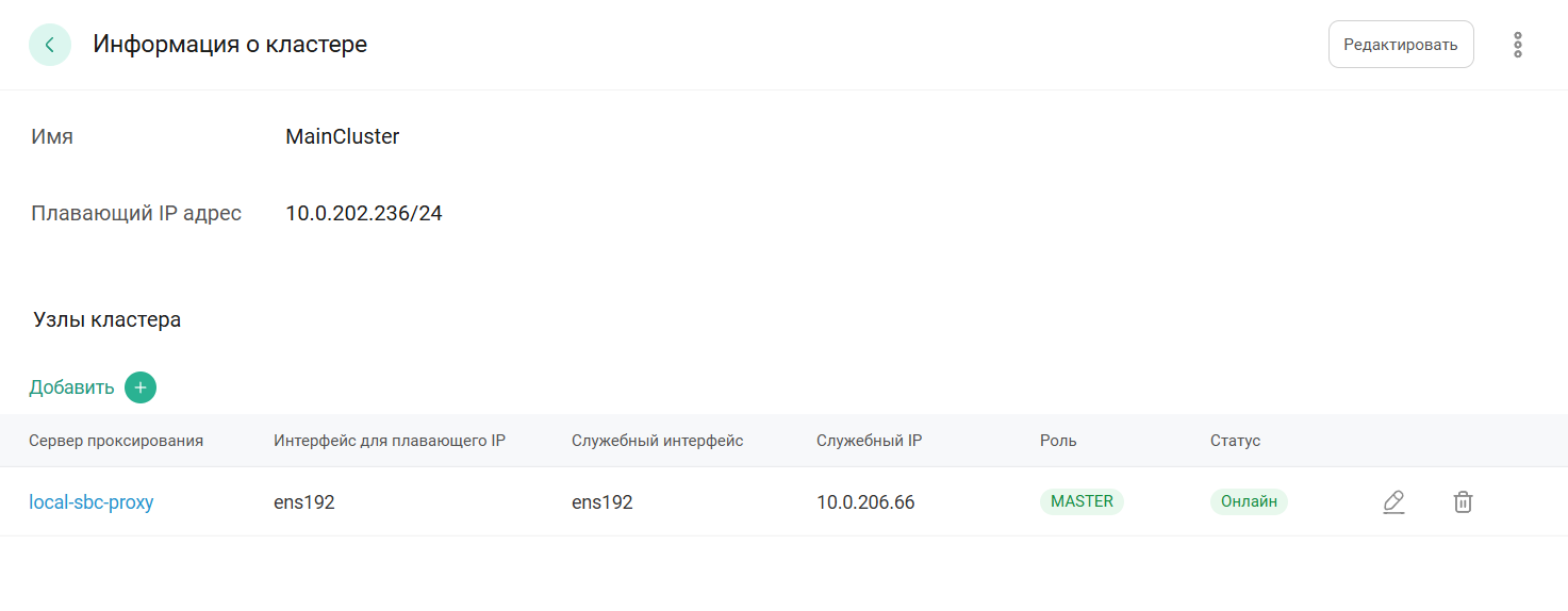 Добавление и редактирование узлов кластера проводится на странице Информация о кластере: