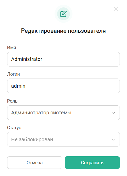Редактирование пользователя