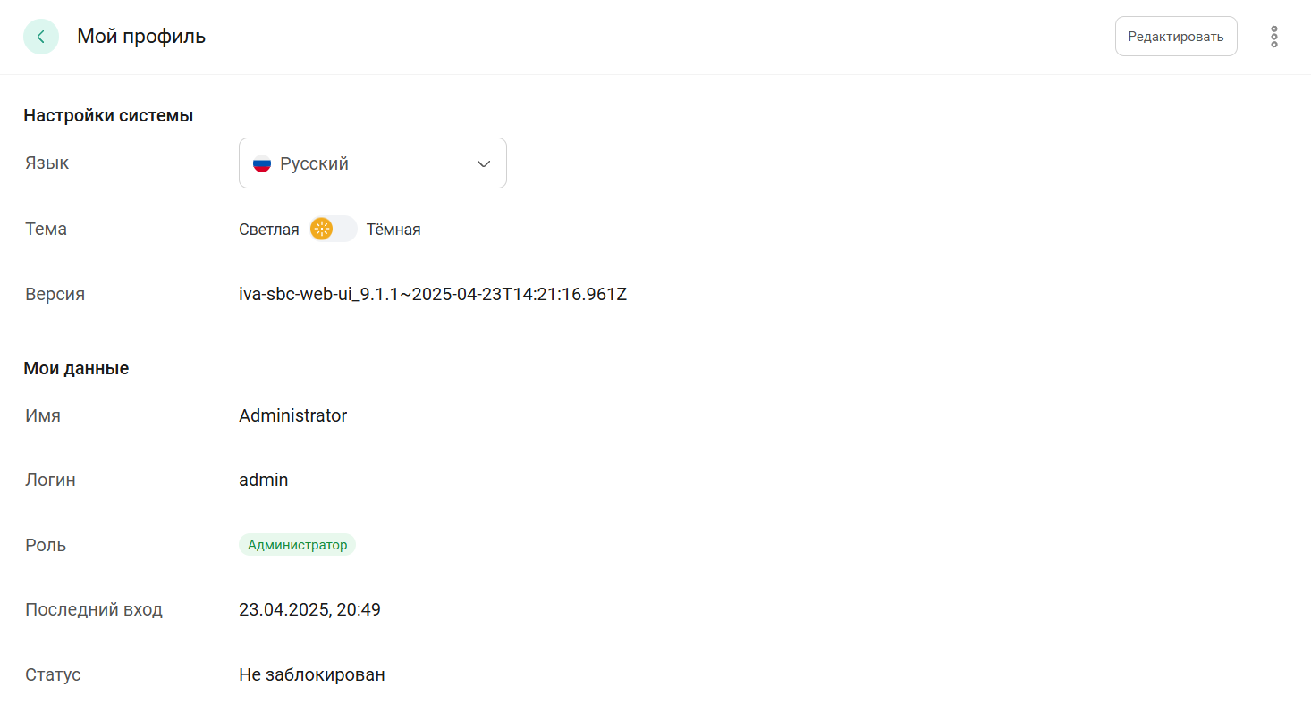 Редактирование профиля пользователя