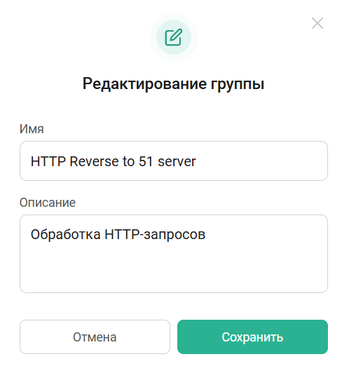 На странице Информация о группе маршрутизации можно редактировать описание группы маршрутизации: