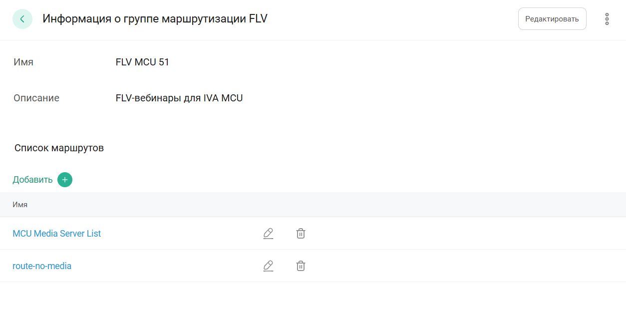 Добавление и редактирование маршрутов для групп маршрутизации проводится на странице Информация о группе маршрутизации:
