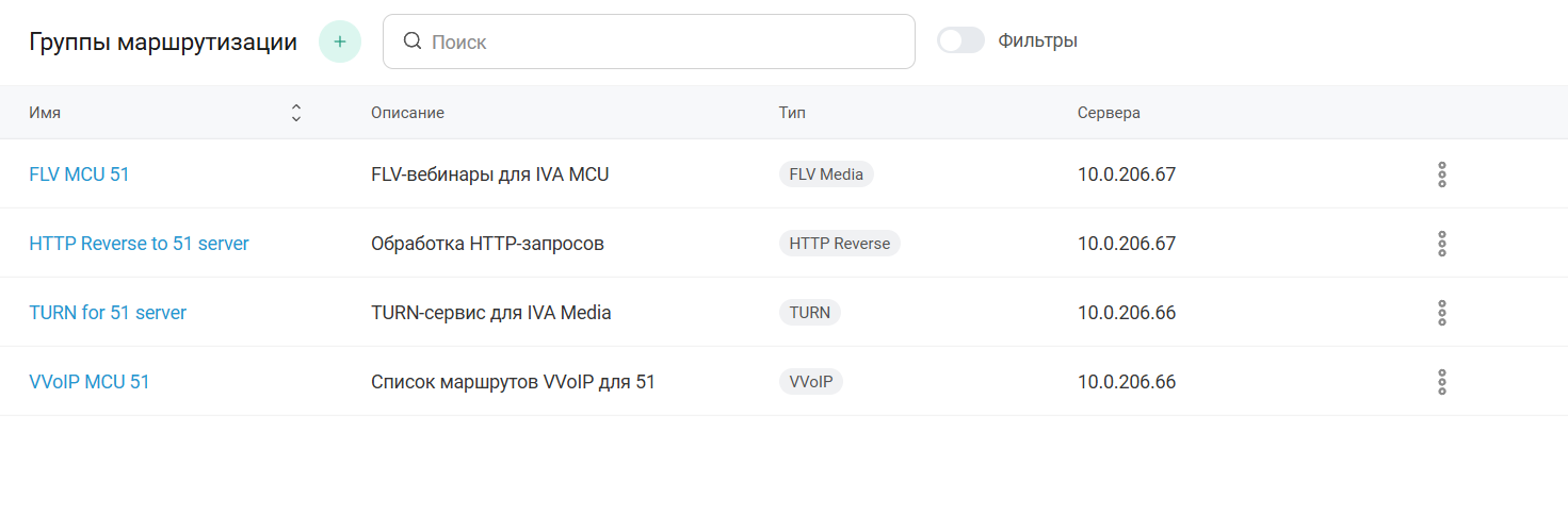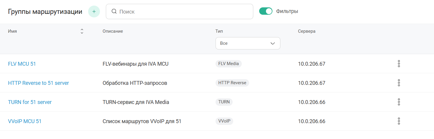 Группы маршрутизации используются для объединения добавленных маршрутов. Это позволяет обрабатывать несколько маршрутов на одном сервере. Каждая группа содержит последовательный набор маршрутов одного из типов: