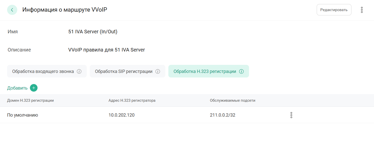 Редактирование правила обработки H.323-регистрации