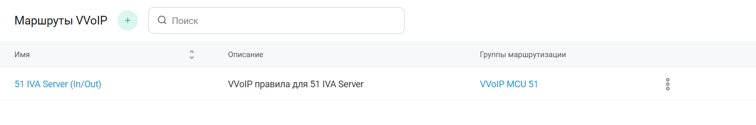 В разделе Маршруты VVoIP отображается список существующих в системе маршрутов VVoIP: