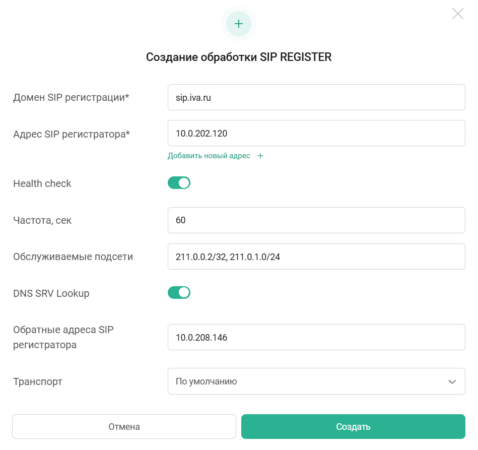 Чтобы добавить правило обработки SIP-регистрации, необходимо: