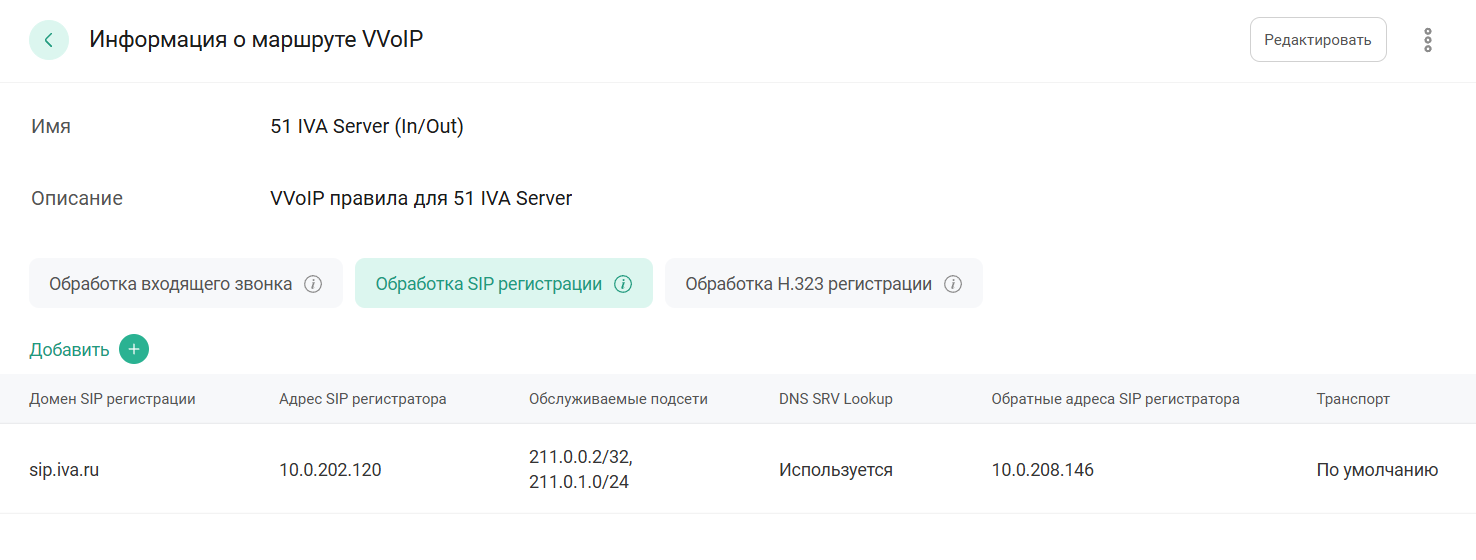 Чтобы редактировать правило обработки SIP-регистрации, необходимо: