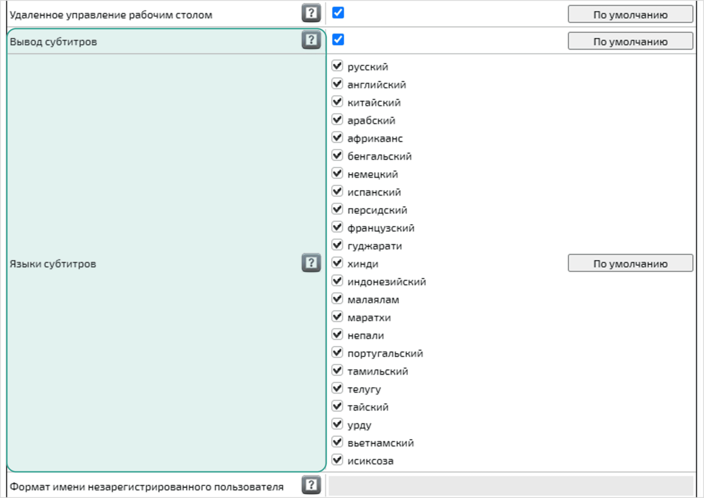 Языки субтитров — для выбора языков перевода субтитров в мероприятии