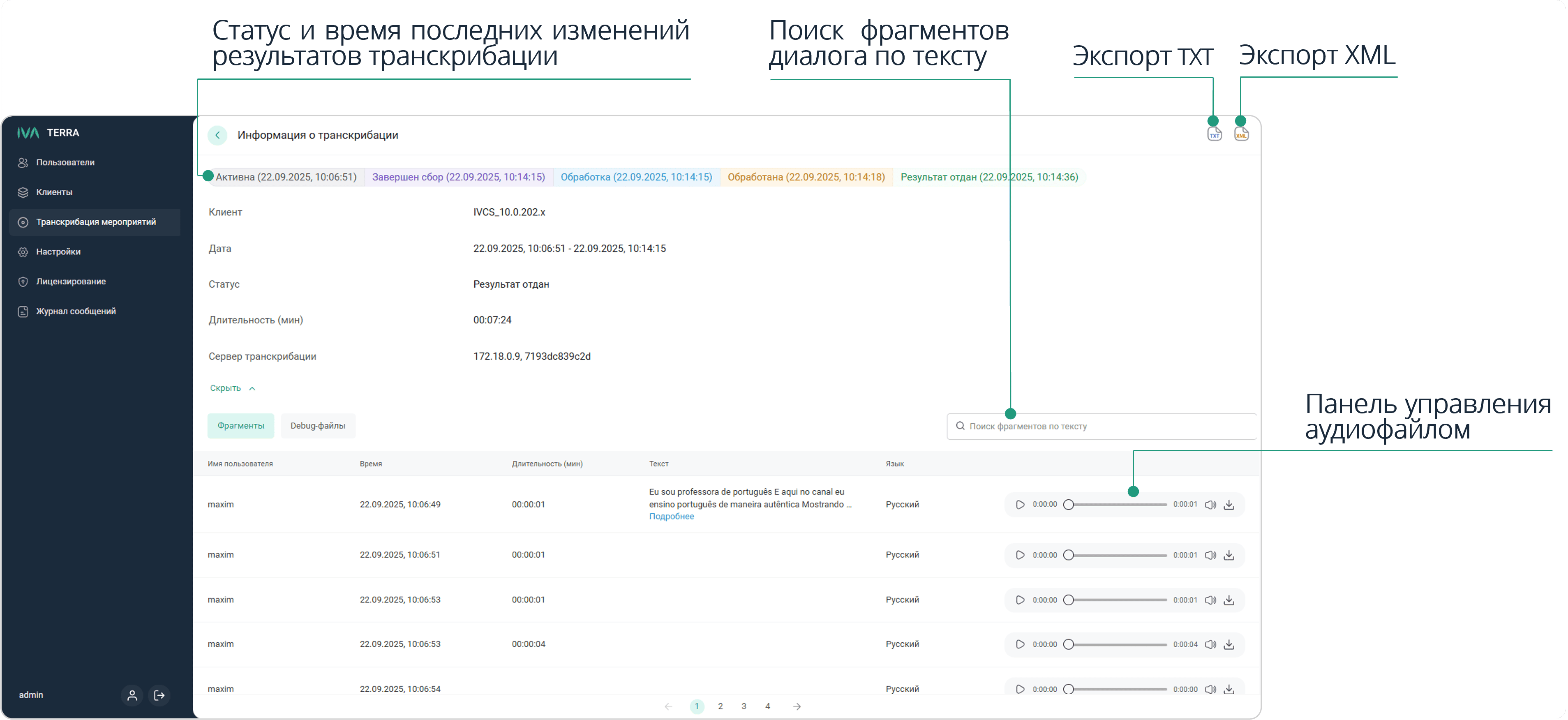 экспорт результата транскрибации мероприятия в текстовом формате .txt