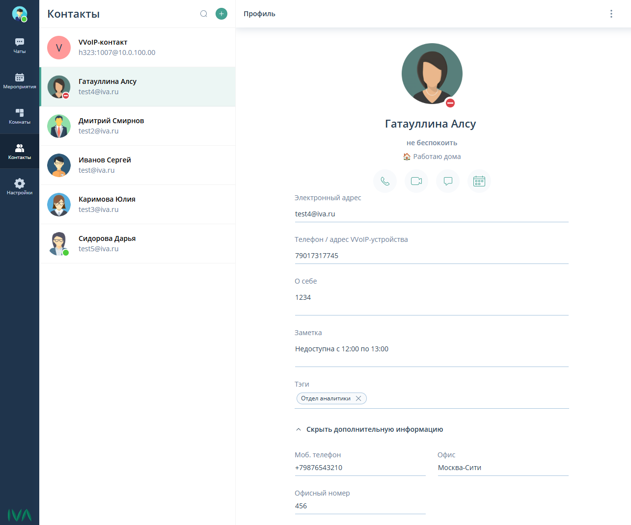 Информацию о контакте из локальной адресной книги пользователь заполняет самостоятельно при создании нового контакта и может редактировать поля в профиле контакта.