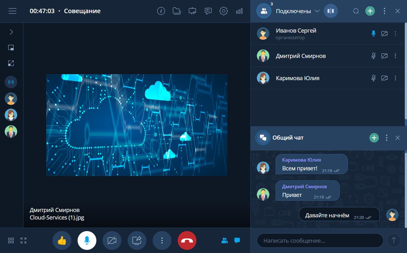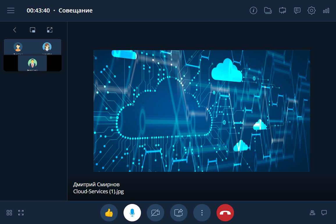 сменить контент в основной области трансляции: видео участников / демонстрация