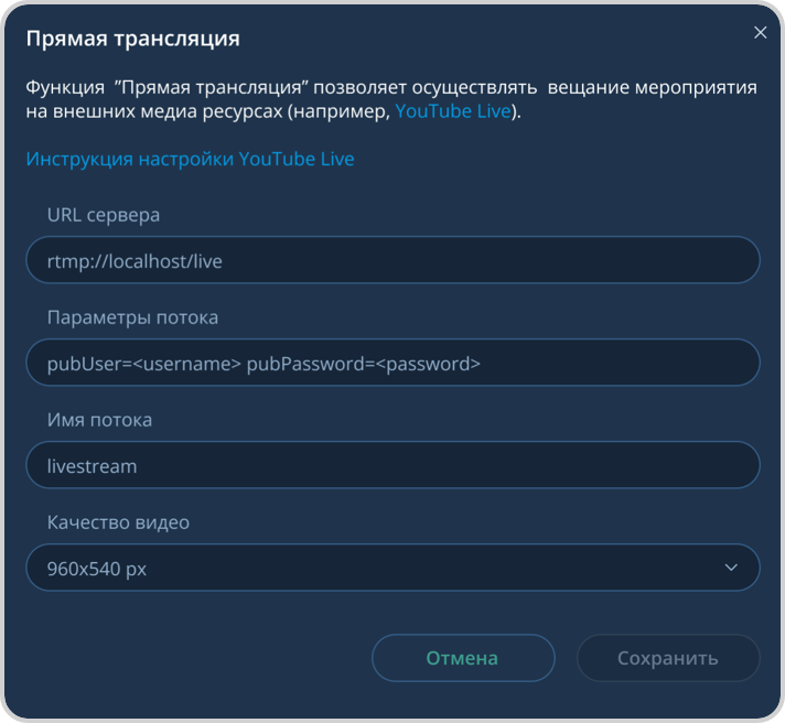 на стороннем медиаресурсе начать прямую трансляцию мероприятия