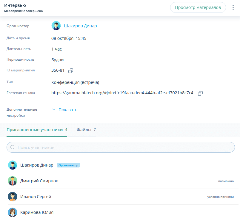 | Для неприглашенных участников просмотр материалов завершенного мероприятия доступен, если установлен уровень доступа Всем |