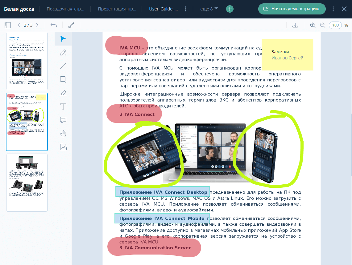 Чтобы открыть многостраничный документ, необходимо в разделе Файлы выбрать документ и нажать кнопку Аннотировать на доске