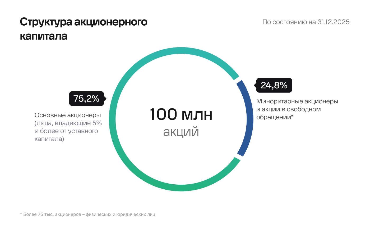 Количество размещенных акций: 100 000 000 штук